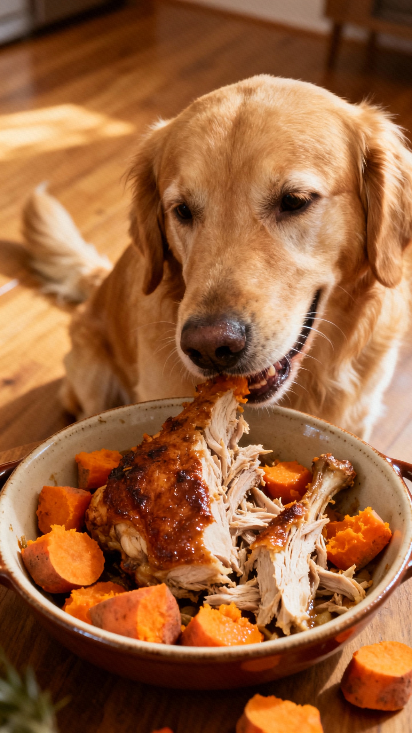 Why it works: Quinoa and sweet potatoes bring complex carbs and fiber. Chicken thighs keep it tasty without drying out. Your dog will act like you just opened a rotisserie shop.