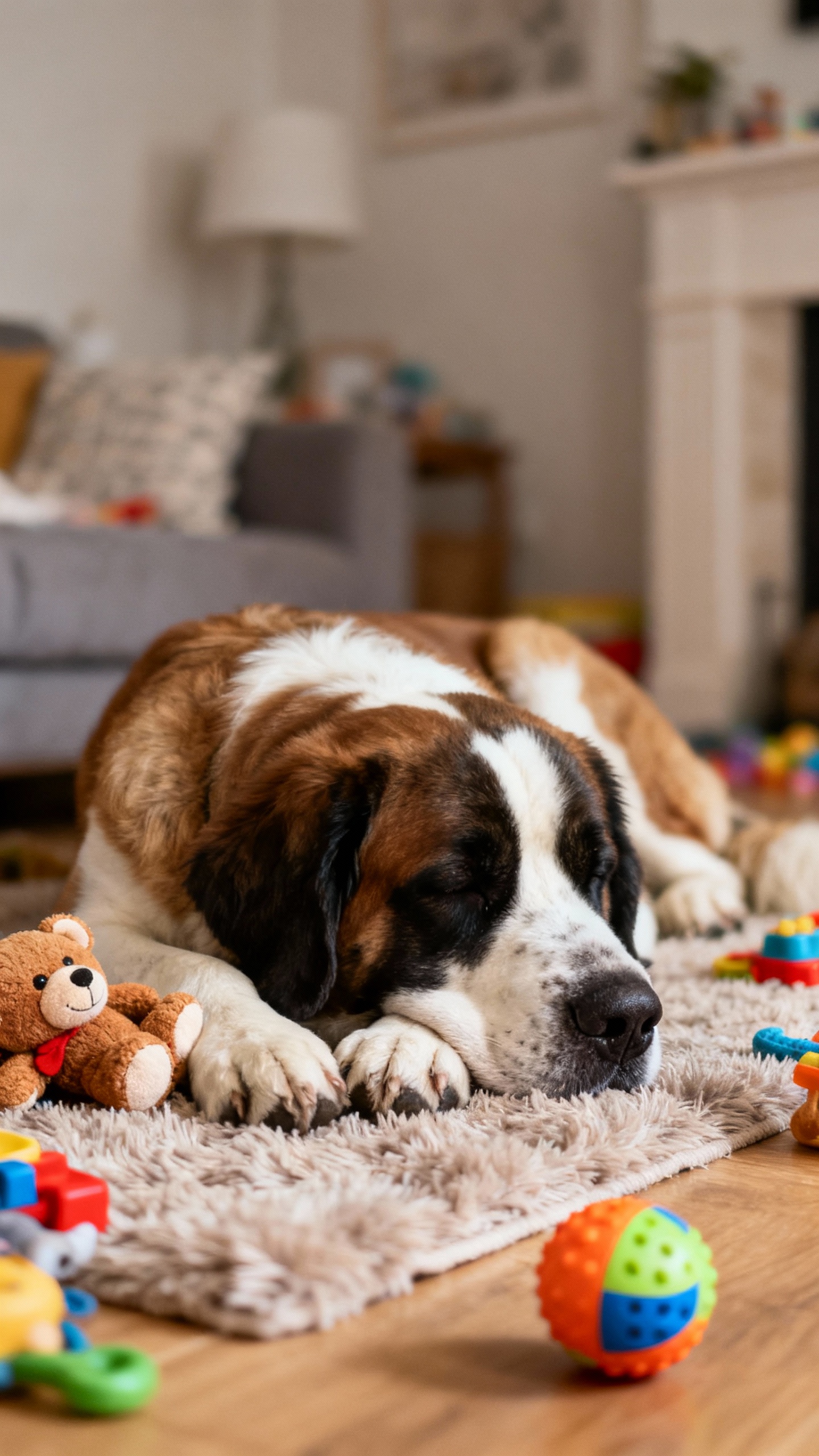 If a living weighted blanket and a cartoon character had a baby, it would be a Saint Bernard. They’re mellow, protective, and famously patient with children. Quick notes: