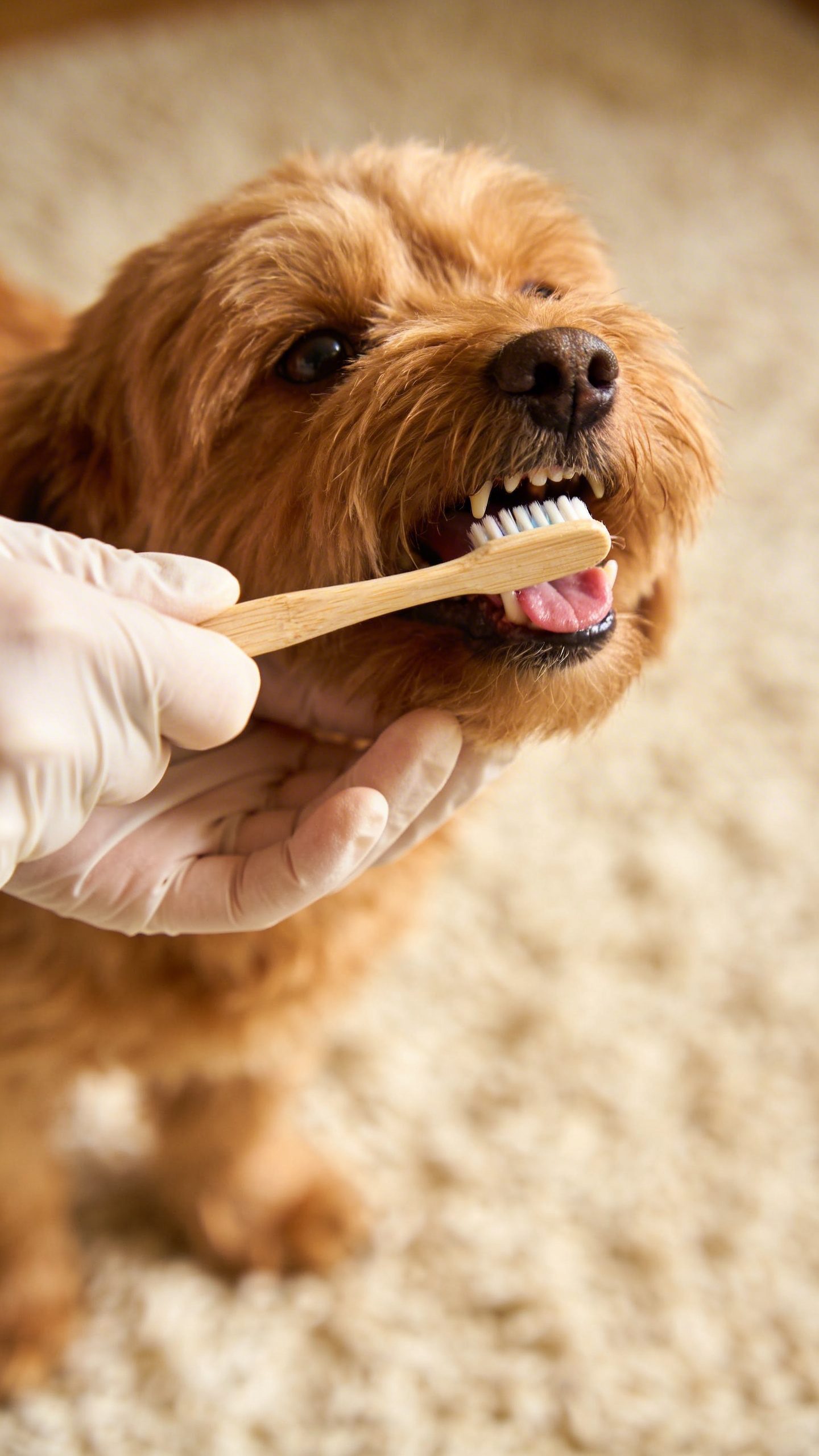 • A soft-bristled brush or finger brush to reach those back teeth without scaring your pup.